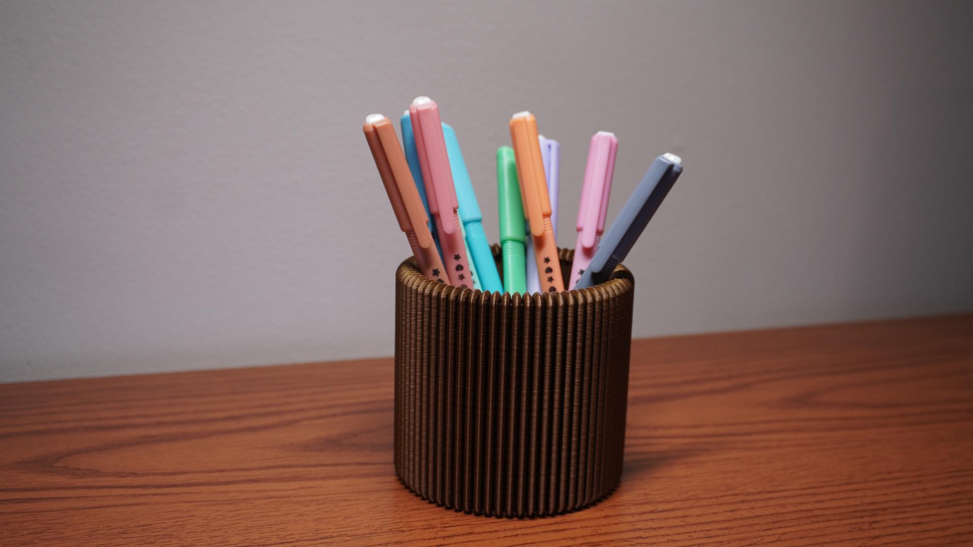 Mantenha sua mesa organizada com um toque de design! Este porta-lápis é impresso em 3D com alta qualidade, trazendo um visual moderno com acabamento em relevo ondulado. Ideal para quem busca funcionalidade e estética no dia a dia de trabalho ou estudos.